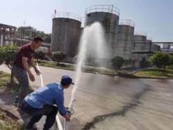 根據(jù)企業(yè)應(yīng)急預(yù)案要求及安全計(jì)劃安排,安全上樹立憂患意識,做到常備不懈;5月12日公司安環(huán)部組織當(dāng)班操作工、動力部安環(huán)部、生產(chǎn)部、倉管人員進(jìn)行重大危險源噴泡沫應(yīng)急演練。
